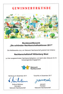 Beide Wohnungsunternehmen haben deshalb besonderes Interesse, dieses Wohngebiet für die Mieter attraktiv zu gestalten. Um etwas gegen die Anonymität im Wohngebiet zu tun, entstand die Idee eines Nachbarschaftstreffs. Ausschlag für das gemeinsame Engagement in Wittenberg West gab ein Preisgeld, das Wiwog und WBG erhalten hatten.