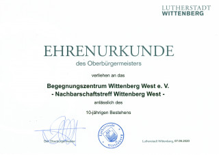 15.07.2010: Gründung des Vereins Begegnungszentrum Wittenberg West e.V. als zukünftiger Träger des Nachbarschaftstreffs